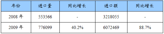 2005-2009年其他磷酸盐(HS:28352990)进口情况统计表