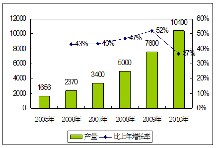 由于铅酸蓄电池具有成本低、技术成熟等优势,在近期国家产业发展中仍将占主流地位。在我国电池 行业 “十一五”发展目标 规划 中,到2010年铅酸蓄电池的发展目标为6679.2万kVAh。我国铅酸蓄电池的市场需求以每年15%~40%的速度增长,产量连续多年超过3000万千伏安时(kVAh)。蓄电池市场需求快速增长,也促使 行业 发展加快,蓄电池生产企业数量增多,企业生产规模扩大,市场竞争越来越激烈。