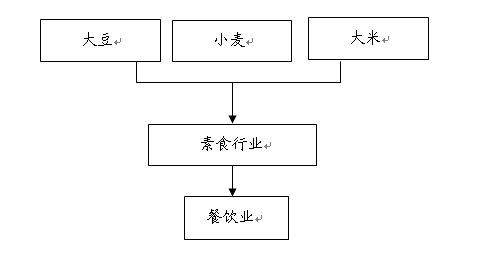 素食 行业 的上游 行业 是指素食的原材料 行业 。素食 行业 的原材料很多,包括:素菜、水果、豆类、菇类、小麦、大米等等。考虑到本报告的针对领域,所以这里将大豆、小麦和大米列为素食的主要上游 行业 。