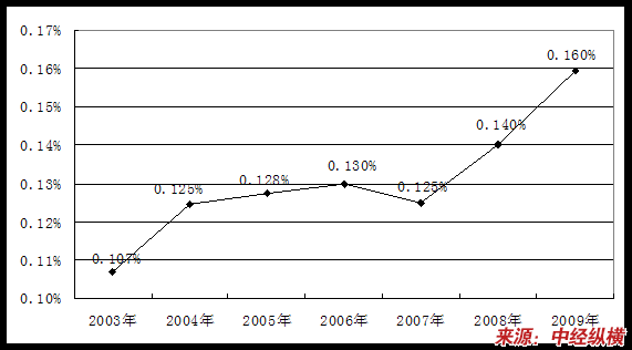 2003-2009年屠宰及肉类加工 行业 在国民经济中所占比重变化情况