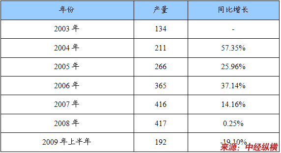 根据大陆半导体协会统计,2009年上半,大陆集成电路产量为192.44亿块,较2008年同期下降了约19.1%;而上半年的全 行业 实现销售收入共约467.92亿元,亦较2008年同期下降了26.9%。主要原因是2009年上半的第1季可说创下了多年来销售的新低纪录,不过产业从第2季起已经逐渐看出复苏迹象。2009年上半年均价达到2.43元/块,2008年同期均价为2.69元/块,2009年价格出现了下降,2009年第2季大陆IC产业实现销售收入265.18亿元,由第1季的202.74亿元增加约30%,不过相较于2008年同期仍约衰退20%左右,可见要恢复金融海啸之前的水平仍有一段距离,但是已经较第2季的年衰退34.1%改善许多,可见大陆集成电路产业正在逐步走出低谷,预计均价将有所回调。