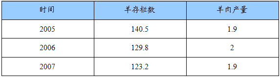 2005-2007年匈牙利羊存栏数以及羊肉产量情况