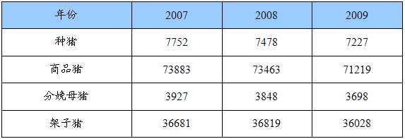 猪场数从1975年的223000个下降到2007年的14000个,猪群的大小从平均34 头增加到700多头,而在2008年只剩下8800个,而猪群的规模扩大到565头。