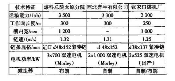 我国新近开发研制刮板输送机主要技术参数