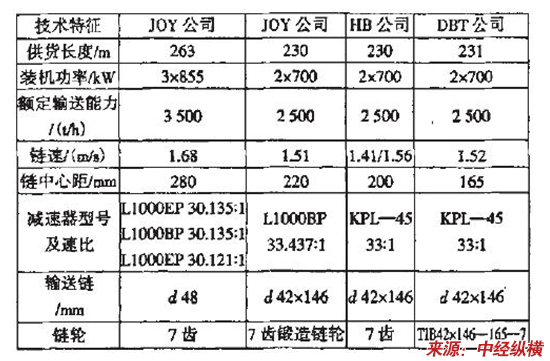 国外刮板输送机主要生产企业的产品技术特征