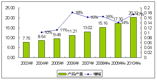 2003—2010年软包装粘合剂产品产量 分析 及预测图