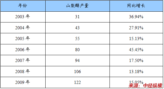 2007年,燃料与甲醇价格上升幅度很大,但玉米淀粉与淀粉糖价格基本持平。催化剂价格基本未变,而70%山梨醇的价格则从06年的2700元/吨提高到3000元/吨。而糖醇生产的技术进步,吨山梨醇加工成本从700-1000元下降到目前的300-450元,预计未来几年,我国山梨醇的价格仍呈下跌走势。