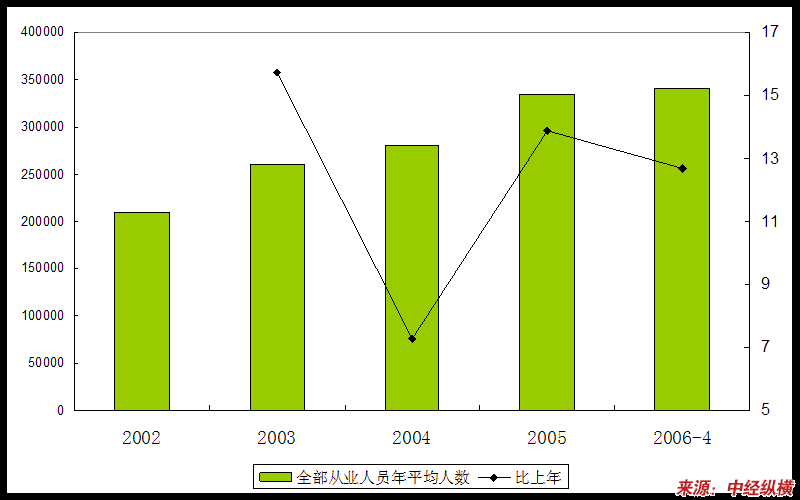 一、2002-2006年4月 行业 从业年平均人数 分析