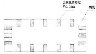 是将配好的膏印刷或涂在陶瓷的表面上,以便烧结时能使两者很好的结合在一起,印刷的厚度约为0.02-0.05mm。下图为一种陶瓷封装的印刷图。