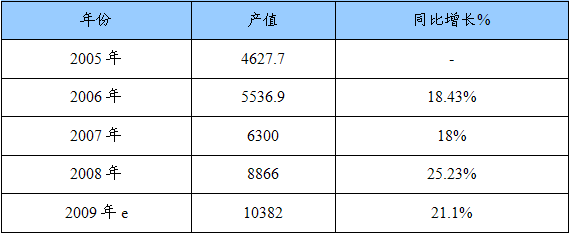 2005-2009年医药业工业产总值增长情况统计表