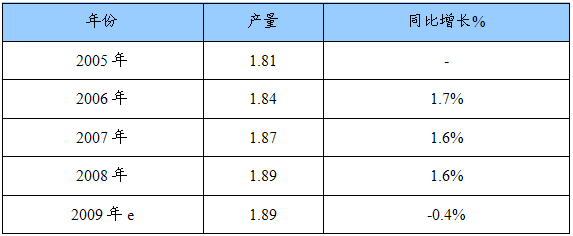2005-2009年石油产量增长情况统计表