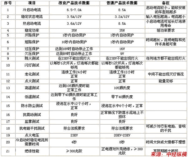 氙气灯取代卤素灯是汽车照明的发展趋势,随着汽车HID的高速发展,HID氙气灯有了长足的进步,在技术方面有了较多改进,以下就不同的汽车HID氙气灯产品主要参数作对比,揭示HID技术的发展动向: