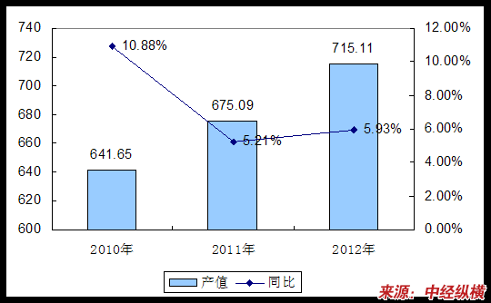 2010-2012年我国多层陶瓷集成电路封装外壳产值预测表