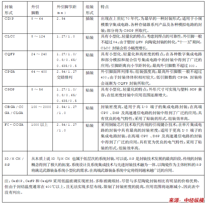 主要陶瓷封装形式及其特点