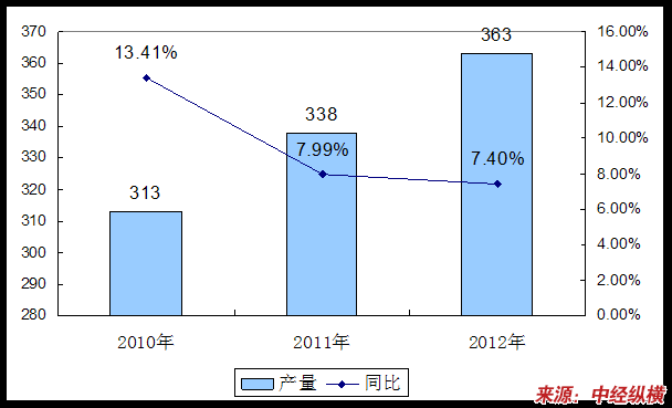 2010-2012年我国多层陶瓷集成电路封装外壳产量预测表