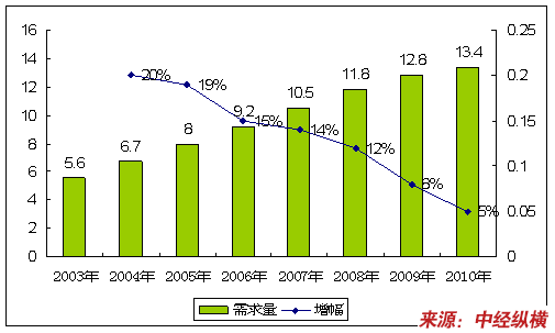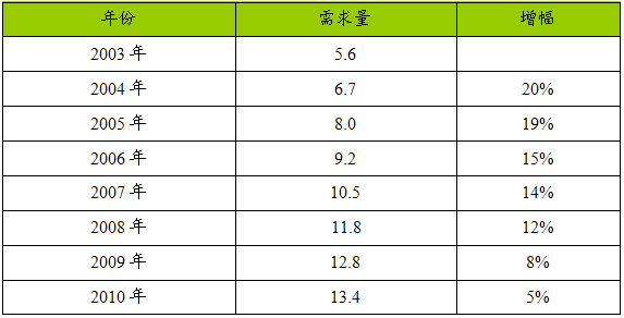 2003-2010年我国对流罩式退火炉产品需求量 分析 及趋势表