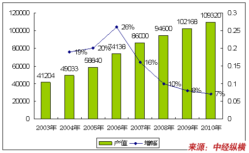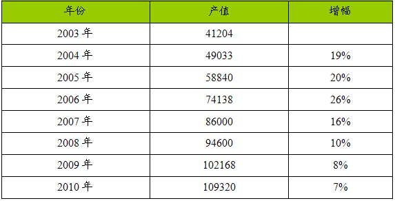 2003-2010年我国对流罩式退火炉产品产值 分析 及趋势表