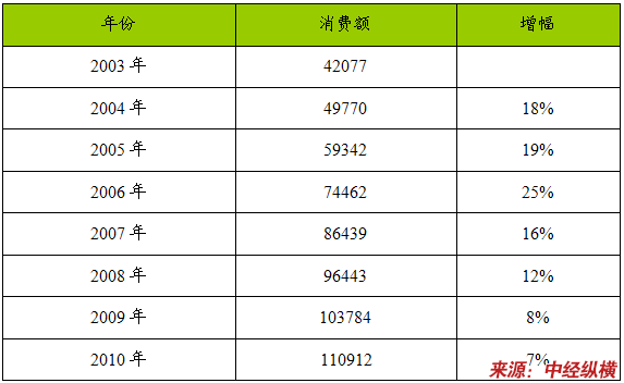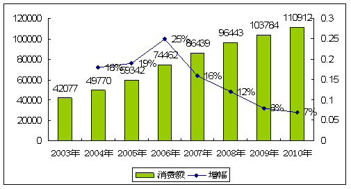 2003-2010年我国对流罩式退火炉产品消费额 分析 及趋势表