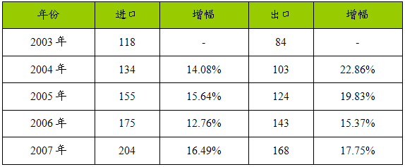 近几年,我国日光温室进出口量都有不同程度的增加,但总体上出口增幅大于进口增幅,说明我国日光温室产业规模不断扩大,产品质量不断提高。进口产品仍然占据我国日光温室市场部分份额,主要进口的是连栋日光温室产品,我国在大型连栋温室产品研发上距国外还有一定的差距。
