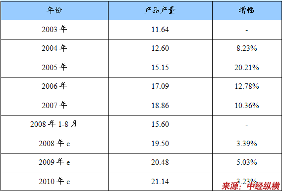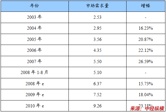 2003—2010年金属碲产品市场需求及预测表