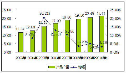 2003—2010年锑矿采选产量 分析 及预测图