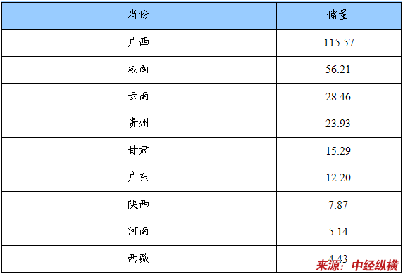 我国锑矿储量地区分布表