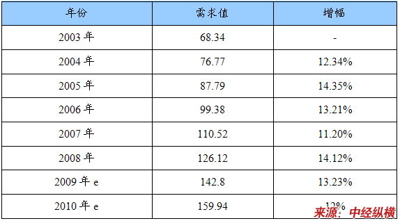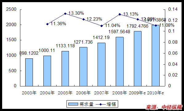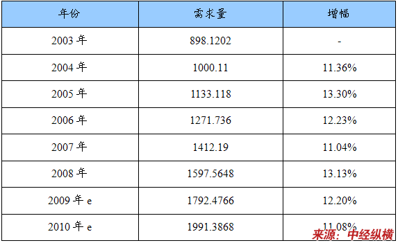 2003-2010年我国高频无极灯需求量 分析 及预测表