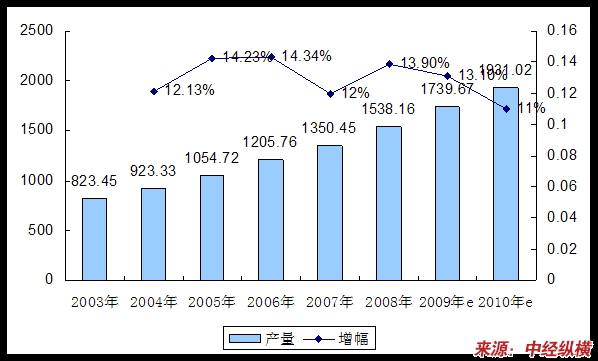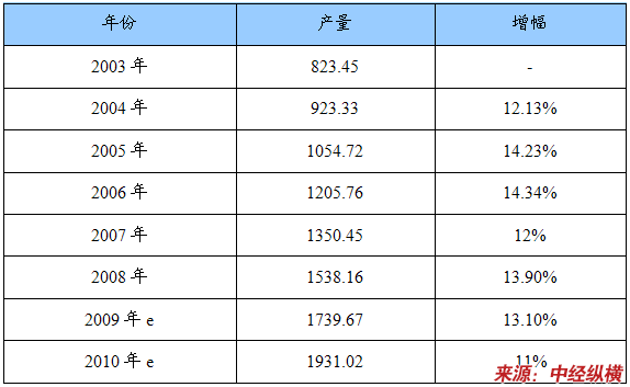2003-2010年我国高频无极灯产量 分析 及预测表