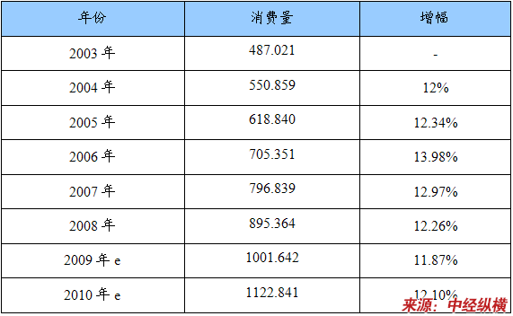 2003-2010年我国高频无极灯消费量 分析 及预测表