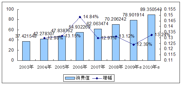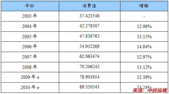 2003-2010年我国高频无极灯消费值 分析 及预测表