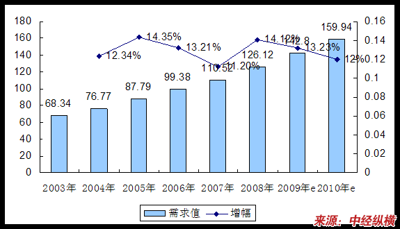 2003-2010年我国高频无极灯需求值 分析 及预测图