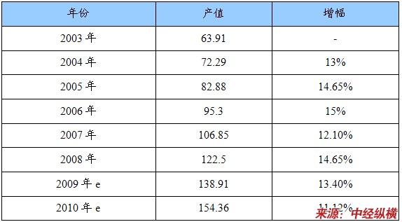2003-2010年我国高频无极灯产值 分析 及预测表