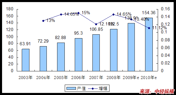 2003-2010年我国高频无极灯产值 分析 及预测图