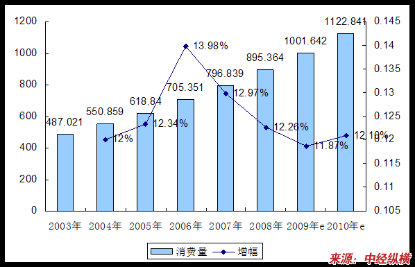 2003-2010年我国高频无极灯消费量 分析 及预测图