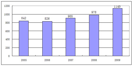 2005-2009年调味品、发酵制品制造 行业 企业数