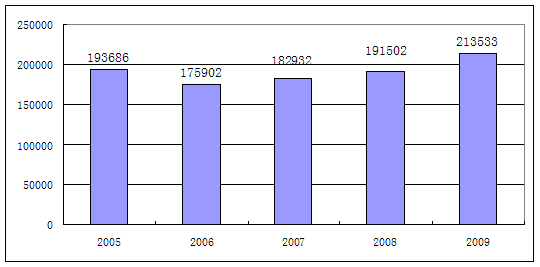 2005-2009年调味品、发酵制品制造 行业 从业人员
