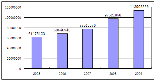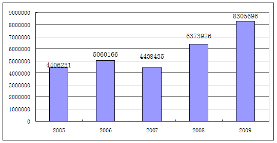 2005-2009年调味品、发酵制品制造 行业 产品销售收入