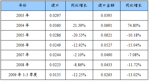 2003-2009年三季度我国维生素C及其衍生品进口数量及金额统计