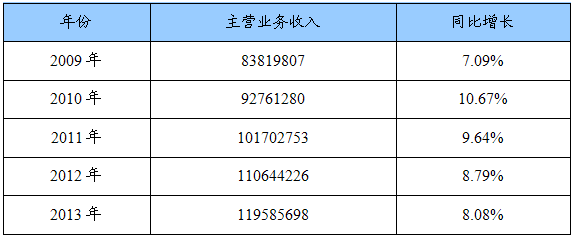 2009-2013年我国修井企业主营业务收入预测表