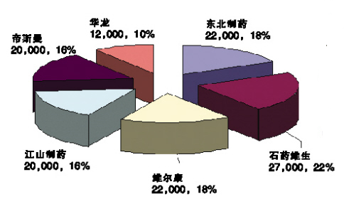 从图中可以看出,我国维生素C集中度非常高, 前三企业集中度达到48%,前5集中度达到80%。