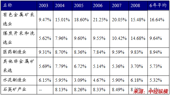 第五节 2003-2008年 行业 利润率对比(重点关注投资领域)