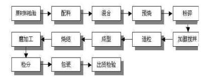 粉碎:对预烧料颗粒进行破碎,并制成具有一定粒度及粘度的料浆。