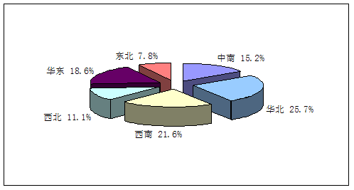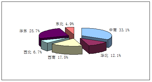 2009年我国卫星通信天线需求区域结构分布图