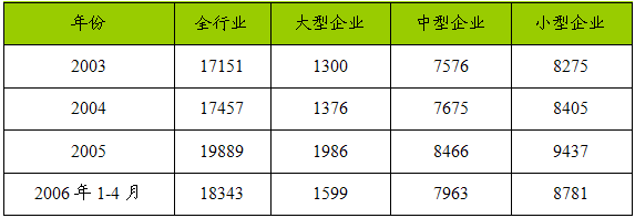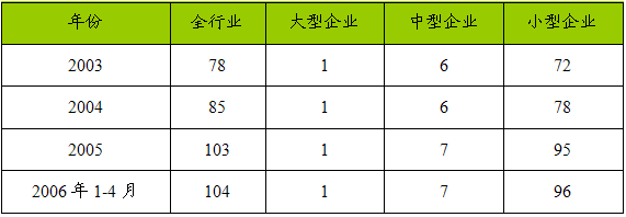 2003年-2006年4月钨钼冶炼制造业不同规模企业数量 分析