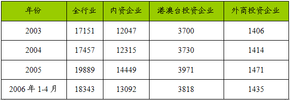 第二节 2003年-2006年3月 行业 企业数量 分析
