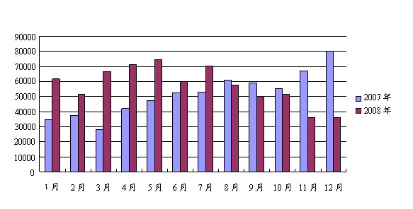 2007~2008年汽车整车月度出口量对比