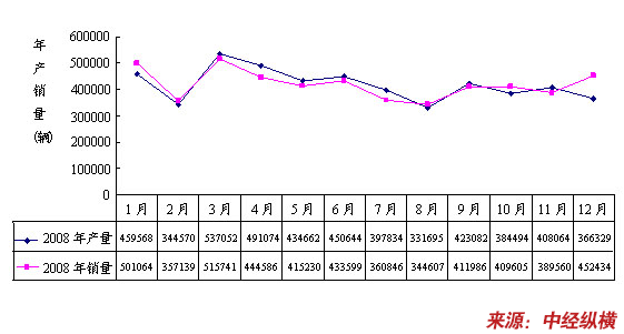 2008年商用车月度产销情况