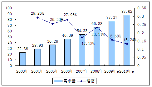 2003-2010年我国输电线路铁塔产品需求量 分析 及预测图