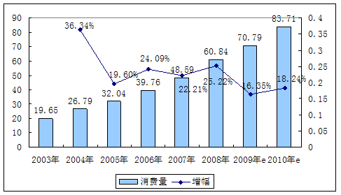 2003—2010年输电线路铁塔消费状况 分析 及预测图