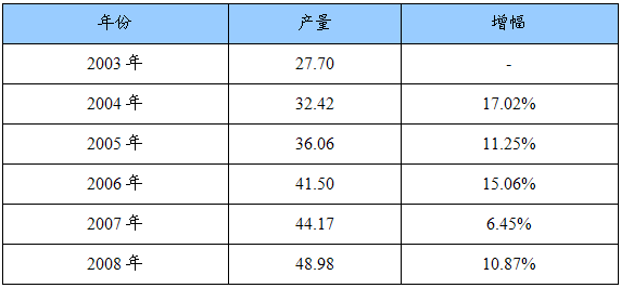 软饮料市场产品丰富,运行良好。产品结构不断更新,新产品不断涌现,果蔬汁饮料、凉茶饮料、果奶等得到市场认同,实践表明我国软饮料市场潜力巨大,有广阔的消费前景。2008年全国软饮料产量6415.10万吨,增长近二成。